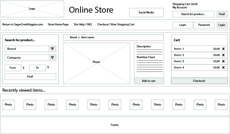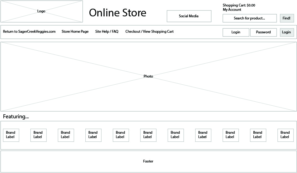 To begin the wireframes for the redesign I reviewed the store layout as it applied to